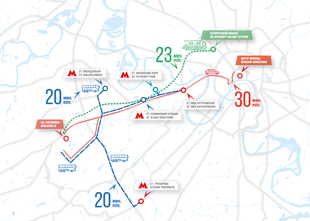 * Подробнее о транспортной доступности «Сколково» смотрите в Приложении.